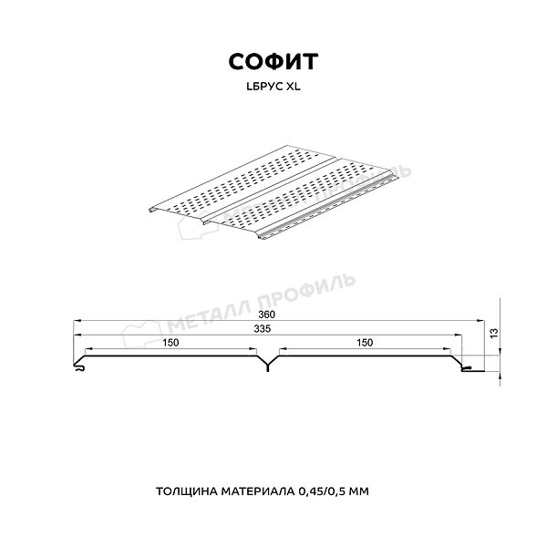 Софит МЕТАЛЛ ПРОФИЛЬ перфор. Lбрус-XL-14х335 (ПЭ-01-7004-0.45)